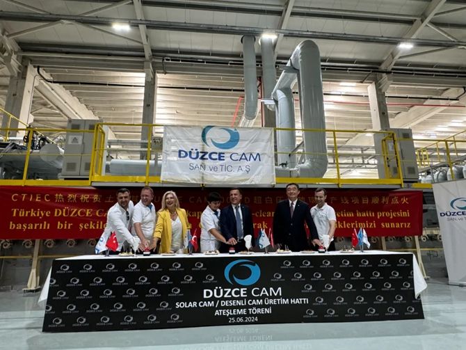 土耳其当地时间2024年6月25日15时18分,全套采用中国标准、技术和装备,由中国建材国际工程集团有限公司总承包建设土耳其Duzce Cam日熔化量300吨超白压延玻璃生产线顺利点火。土耳其Duzce Cam玻璃公司董事会主席、总经理Kasim AKTAS、中国建材工程集团党委书记、总裁马立云参加点火仪式。